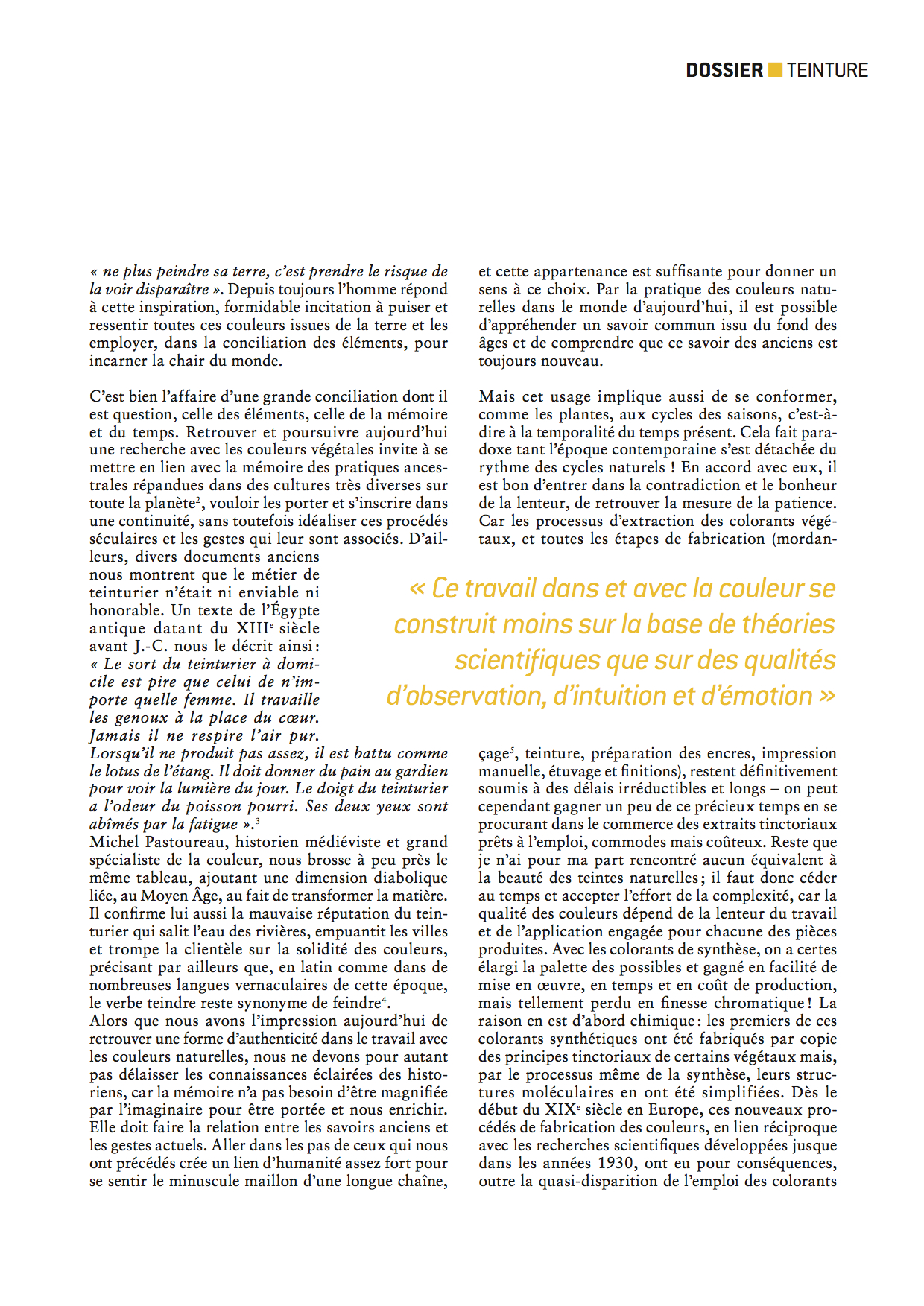 > > La Couleur sensible, approche des teintures naturelles > article paru dans Ateliers d'art Magazine, n°129 /juin-juillet 2017, p.26 à 28 > cliquez sur les textes pour agrandir > dossier >. > portrait de l'atelier p 60/61 Selvedge magazine - mai-juin 2015 - Texte : Anne-Laure Camilleri ..TT..po......................................... . >>>>>>>>>>>>>>>>>>>>>>>>>>>>>>>>>>cliquez sur les textes pour agrandir