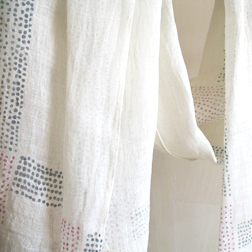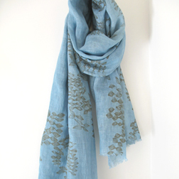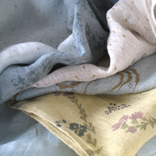 >>>> >.>>>Linen voile scarves and long stoles, weaved in France, vegetable dyes and hand-screen printing with natural dyes - exclusive designs - these items are completly made at >>>>the workshop. |